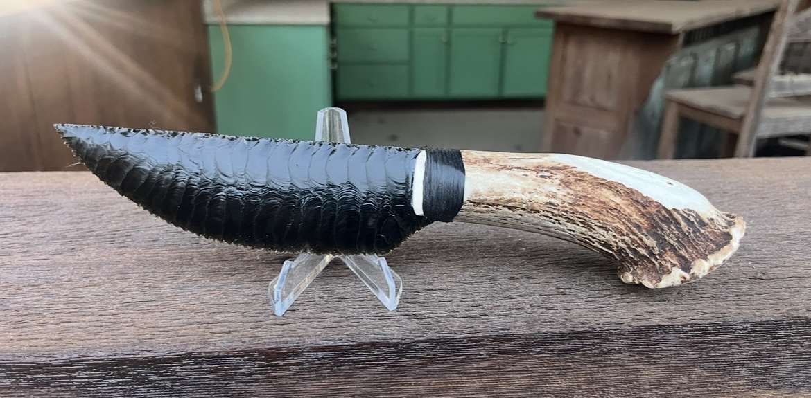 Knapping Artwork by Robert Loftin My name is Bob Loftin. I have been knapping since 2023. After I retired I was looking for a hobby that I could do at home and I picked up a little kit from Amazon and by the time I was through with that I was hooked. I knap with copper percussion and/or FOG. I make a lot of knives and points. I try to get thin notches really deep. I think it makes a point look good. My E-Store is www.loftinlithics.com