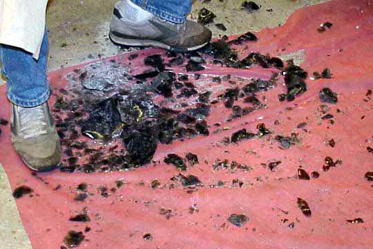 The result of the strike using the techniques described here. The flake was 3 1/2 inches long and traveled all the way across the face to the other side.