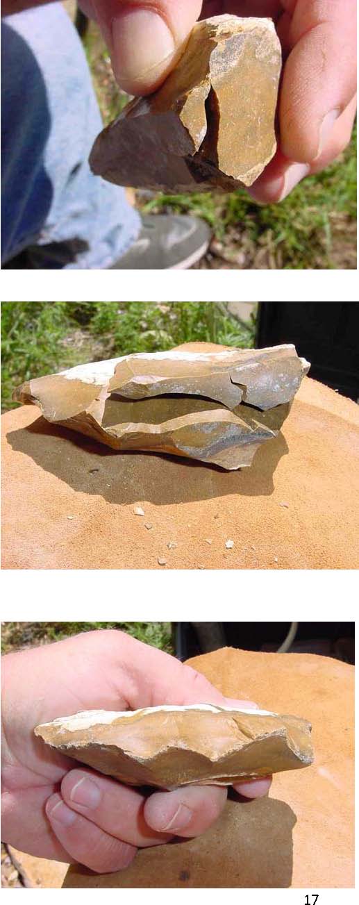 The opposing edge with a flake removed to help reduce the square edge.