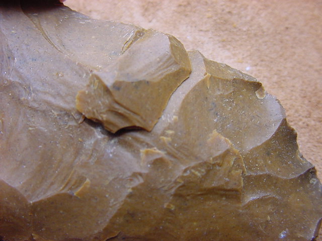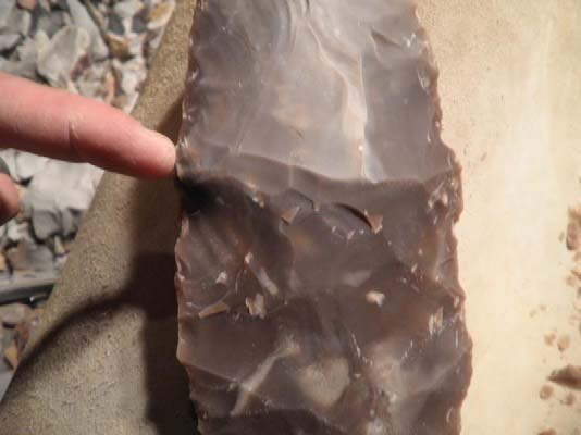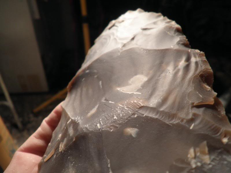 Here you can see the corner of the flake, where I hit a fault in the rock. Too bad, or the flake would have been bigger.