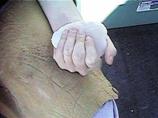The picture above shows how easily the angle can be determined on the knee. The hand would then rest flat on the preform to press it into the pad and prepare it for the strike.